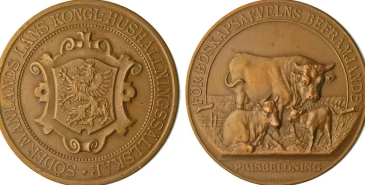 Södermanlands Läns kgl Hushållnings Sällskap. Boskapsavel. Brons. Ø:43mm. Vikt 37,9g.