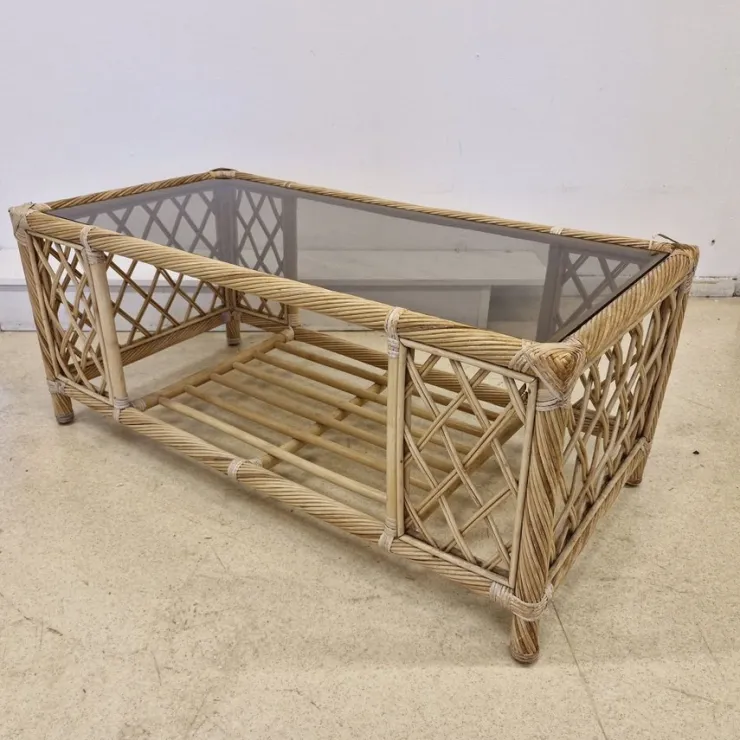 Soffbord i rotting med glasskiva – Rottingbord – Klassiker