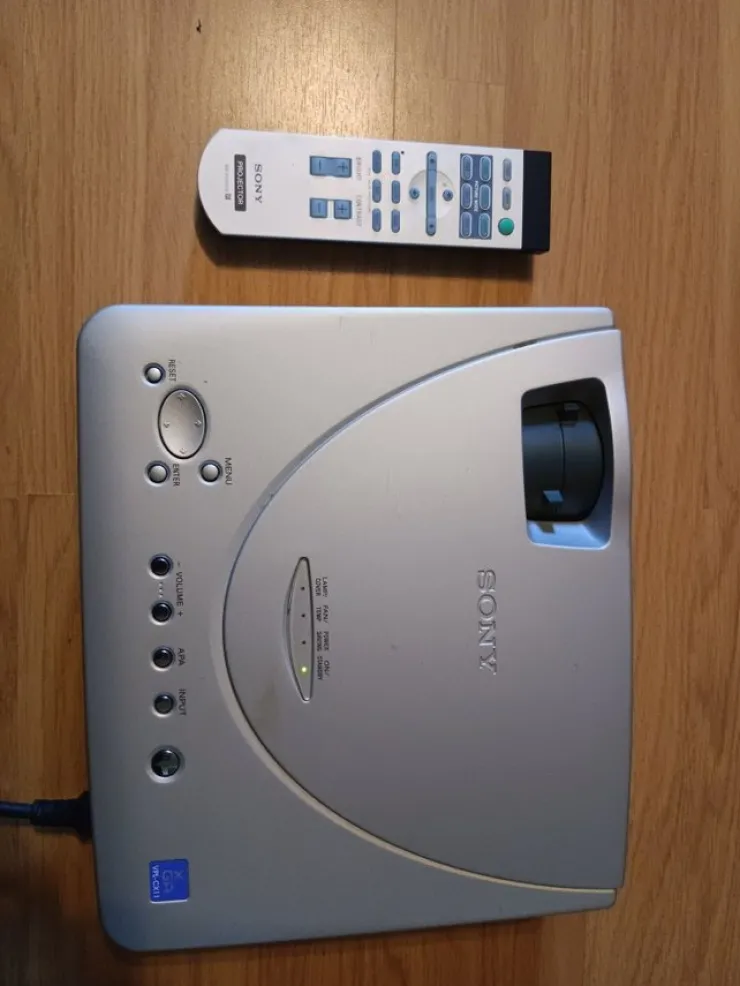 Sony VPL-CX11 dataprojektor. Modellnummer VPL-CX11. Enheten har flera ingångar, inklusive en VGA-port. Medföljer fjärrkontroll.