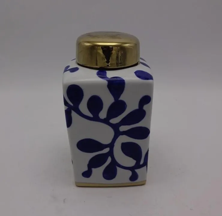 Söt porslinsburk handmålat mönster med förgyllt lock