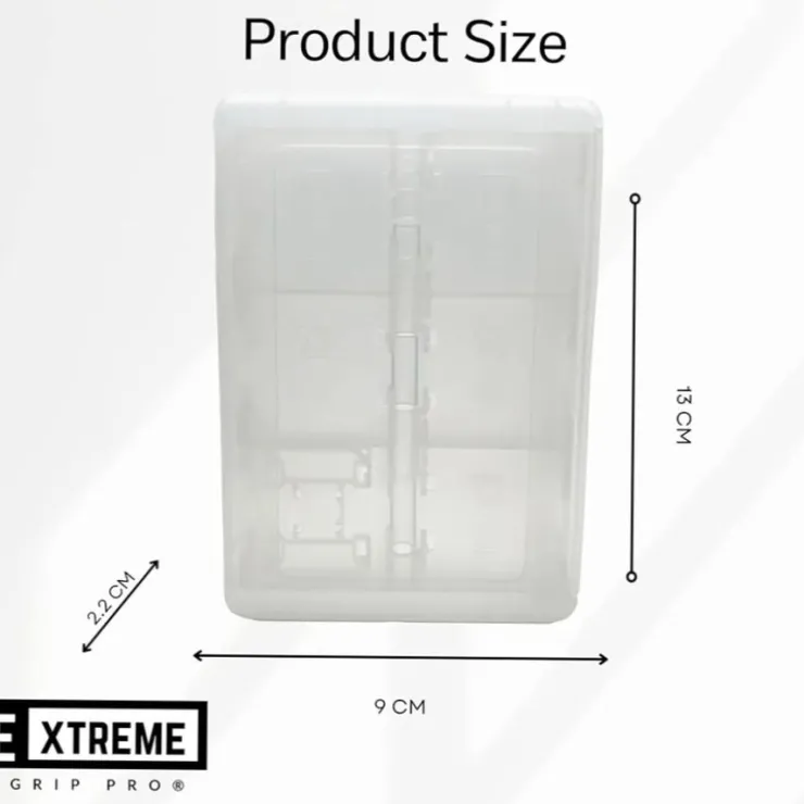 Fodral för spelkort till Nintendo Switch. Fodralet rymmer 12 spelkort och är tillverkat av transparent plast. Fodralet är i gott skick och har inga synliga skador.