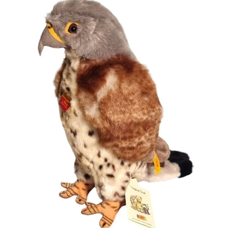 En riktigt fin Tornfalk som är 35 cm hög. Ett mjukisdjur som är ett äkta hantverk då den är handtillverkad i Tyskland. Den designades och tillverkades under 90-talet av Steiff.