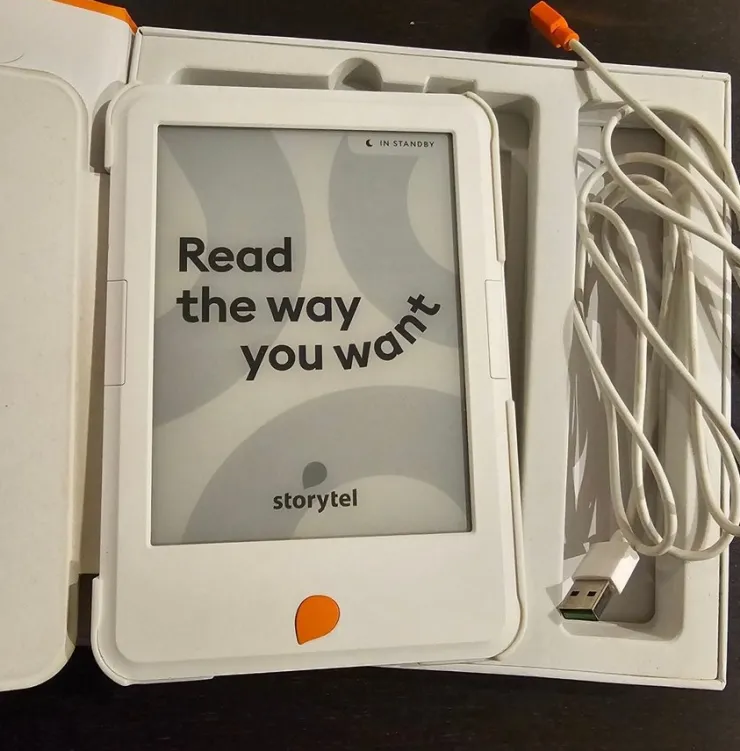 Storytel e-läsare. En bekväm och smidig e-läsare perfekt för att läsa dina favoritböcker. Kompakt och lätt att ta med sig överallt.