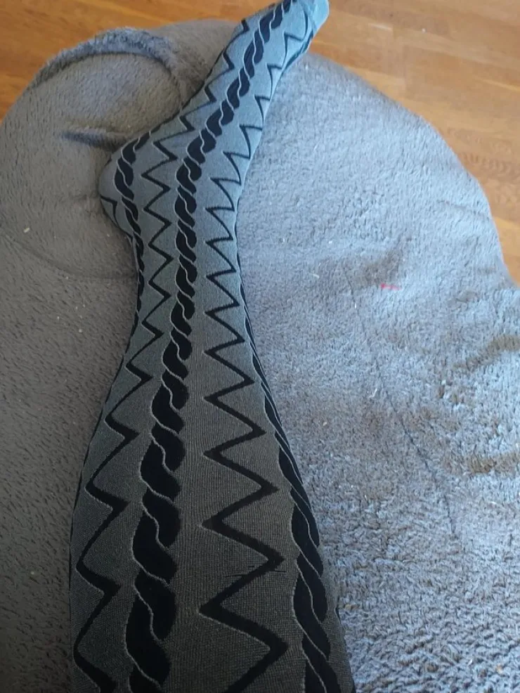 grå med zigzag-mönster i svart och vitt