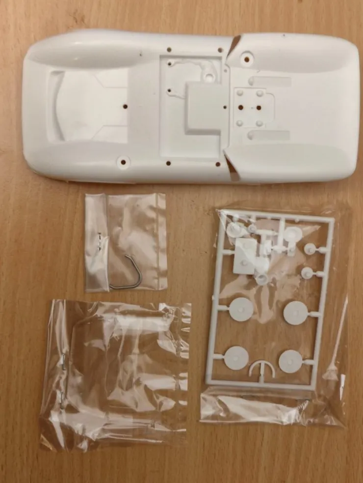 Oöppnad 1/24 skala slotcar kaross byggsats. Begränsad upplaga. Innehåller karossdelar och tillbehör som visas på bilderna. Perfekt för modellbyggare och samlare.
