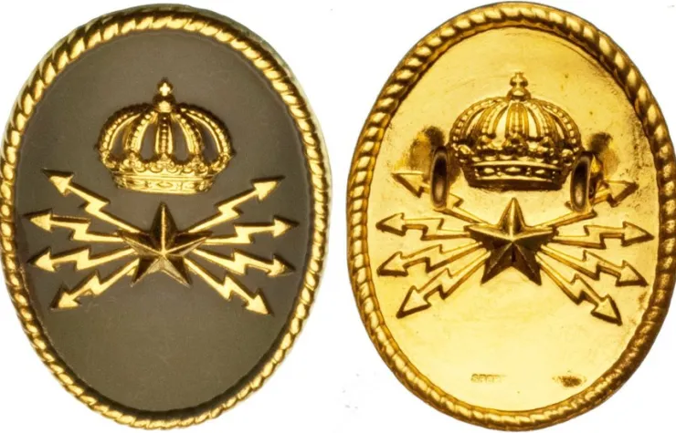 Televerket. Mössmärke 1957 – . Emaljerad massing. Mått ca 34x44mm. Vikt 9,7g.