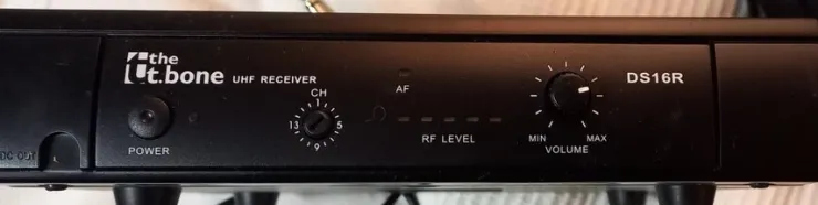 The T.bone UHF trådlöst system med: sändare DS16T (2 AA 1,5v batterier – ingår ej) och mottagare DS16R