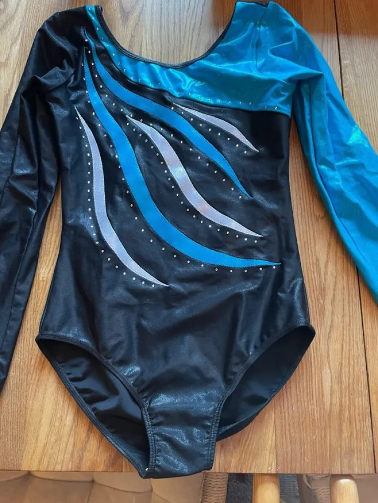 Tradera Träningsdräkt/ Gymnastikdräkt – Svart, Turkos, Storlek 160 cm> Gymnastik