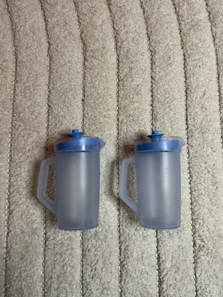 Två små kannor med lock från tupperware. Rymmer 3 dl