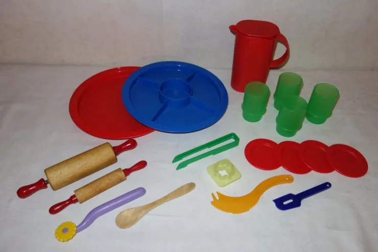 Tradera TUPPERWARE Set bakning och tillbehör till barn inkl kavlar i trä| Tupperware
