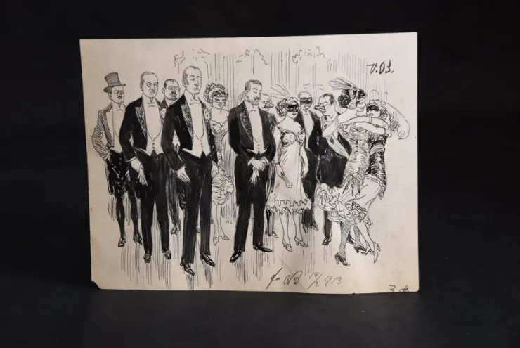 Originalillustration Maskeradbal Signerad 18/2 1913 – Samfrakt!