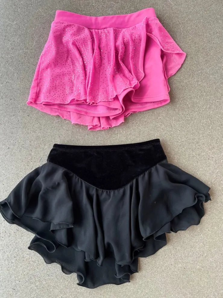 Tradera Två konståkningskjolar- Rosa och Svart – Storlek 10-12> Kunstskøjteløb