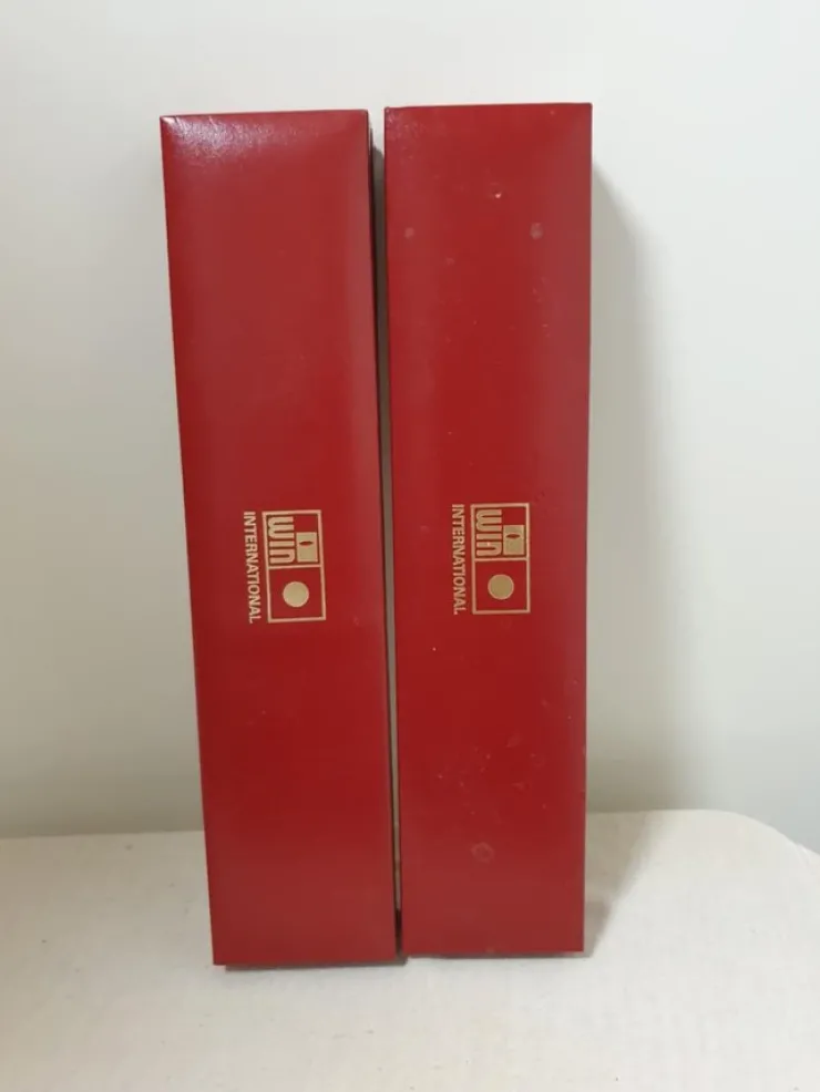 Tradera Två stycken Win International guld-färgade långa tändare i fodral> Tobakiana