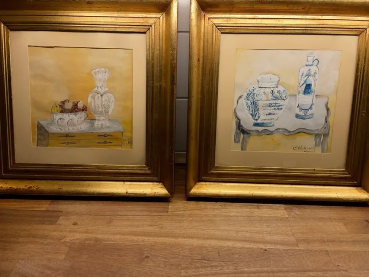 Tradera TVÅ VACKRA GOUACHER STILLEBEN FINA RAMAR| Anden Kunst