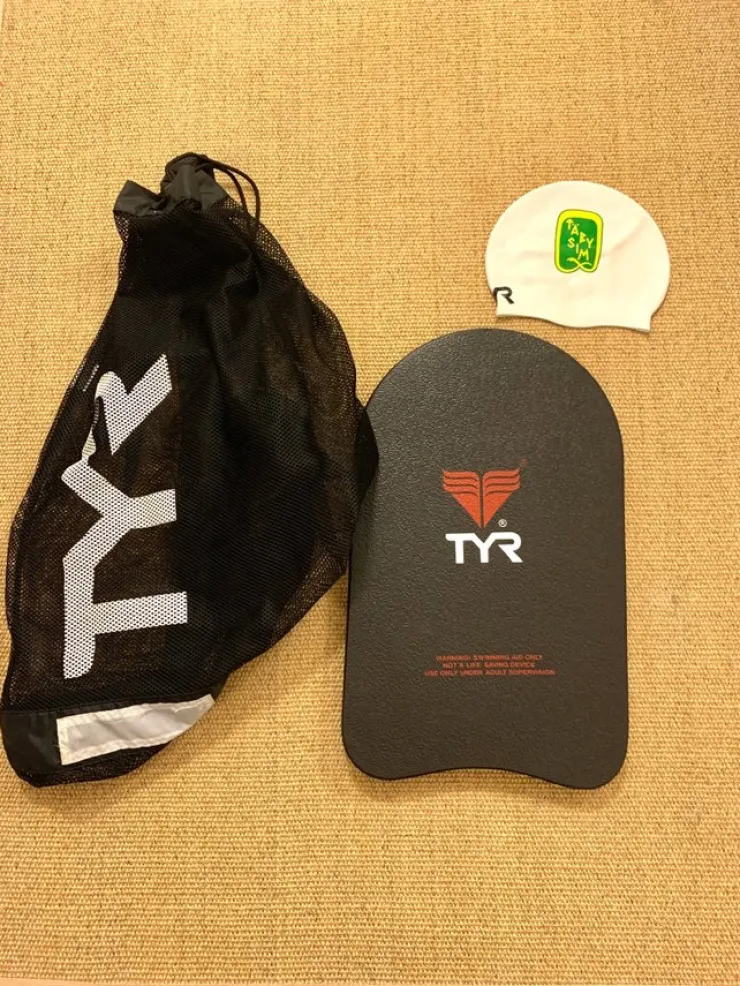 TYR sim platta – Simutrustning – Kickboard. Samt simmössa & Nätväska. Nyskick!