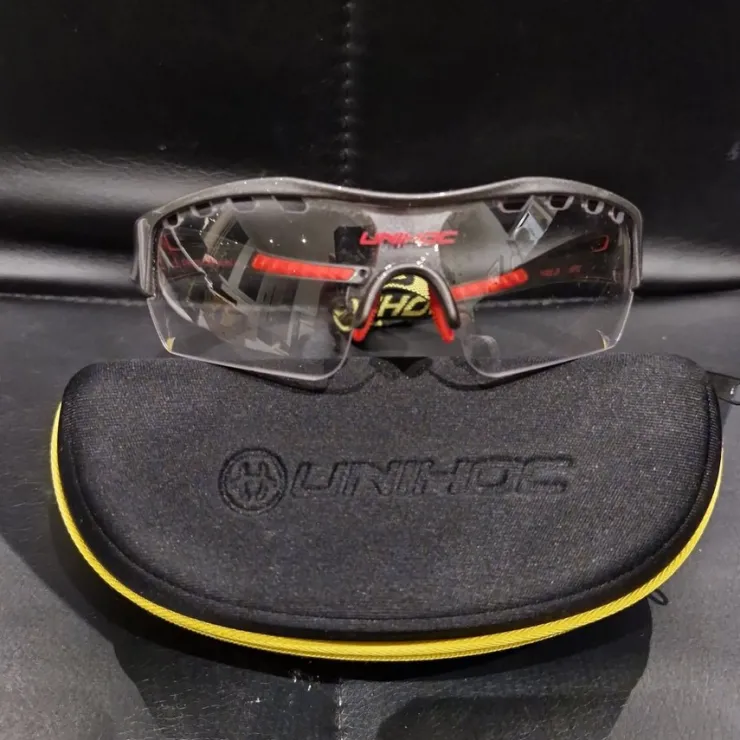 Unihoc skyddsglasögon med tillhörande fodral. Perfekta för innebandy eller andra sporter.
