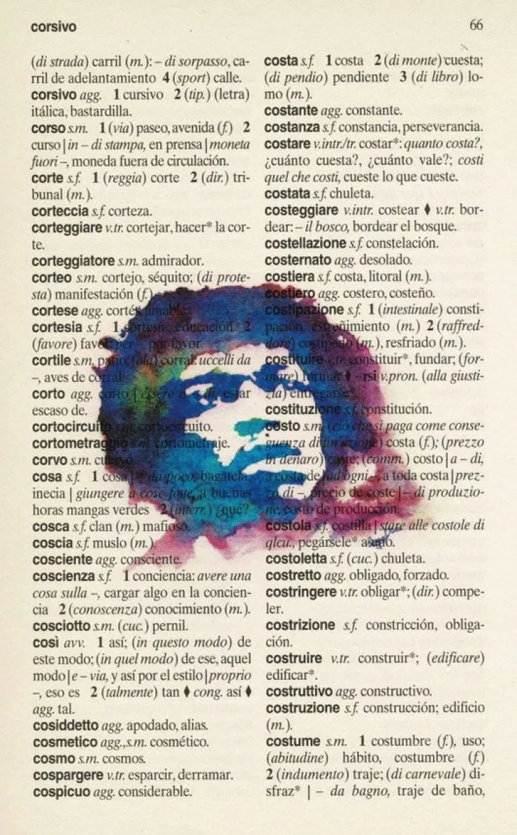 Utskrift av min målning på sida ur italienskt-spanish orginallexikon. Lexikonsidan/konstverket mäter 4,8×7,6 tum eller 12×19 cm. Sidorna har med tiden vackert gulnat, samt har veck och färgskiftningar. Varje utskrift är unik och är på en enskild lexikonsida. Varje konstverk är signerat av konstnären. Gratis frakt. Du handlar direkt från den italienska konstnären Pasquale Lagatta. För ytterligare information kontakta konstnären personligen. Levereras i vadderat kuvert.