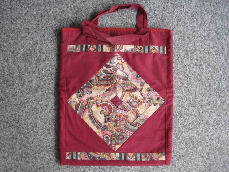 Handgjord väska sydd av bomullstyg i lapptäcksteknik