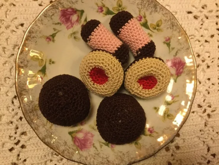 Tradera Virkade kakor / leksaker / mat / grönsaker / frukter| Syning & Strik