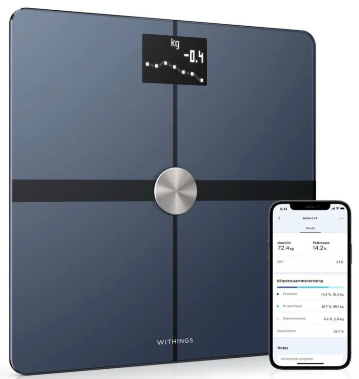 Mäter vikt, kroppsfett, muskelmassa, benmassa, vattenprocent och BMI. Kompatibel med Withings Health Mate-appen och kopplas upp mot wi-fi (görs enkelt via appen).