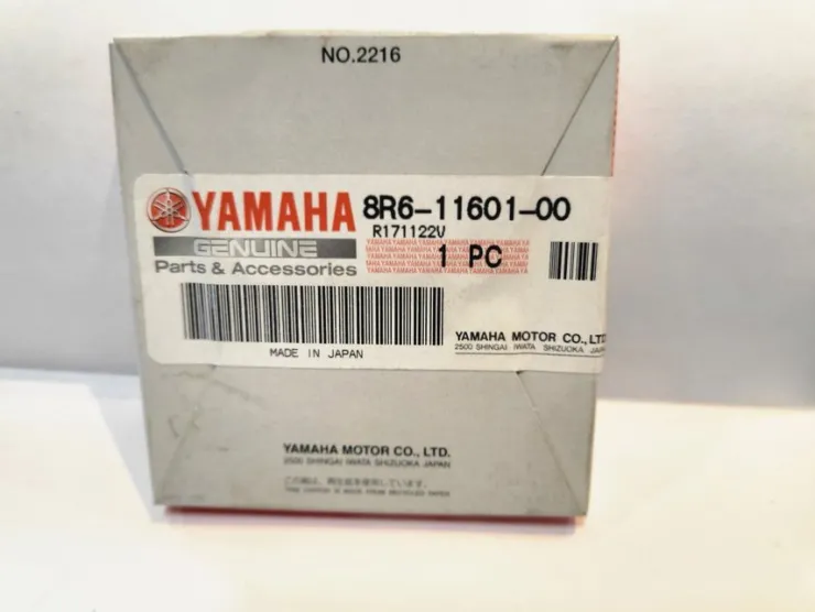 Yamaha original kolvring med artikelnummer 8R6-11601-00. Fremstillet i Japan.