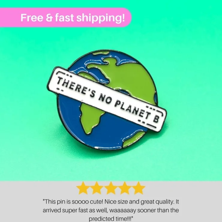 Looking for a way to show off your love for planet Earth? Look no further than our ”There's no planet B” enamel pin! This pin isn't just a stylish accessory – it's a statement that you care about the environment and are committed to making a difference. Wear it proudly and let everyone know that you're doing your part to combat climate change. It's the perfect addition to any outfit, and it'll make you feel good about doing your part for the planet.