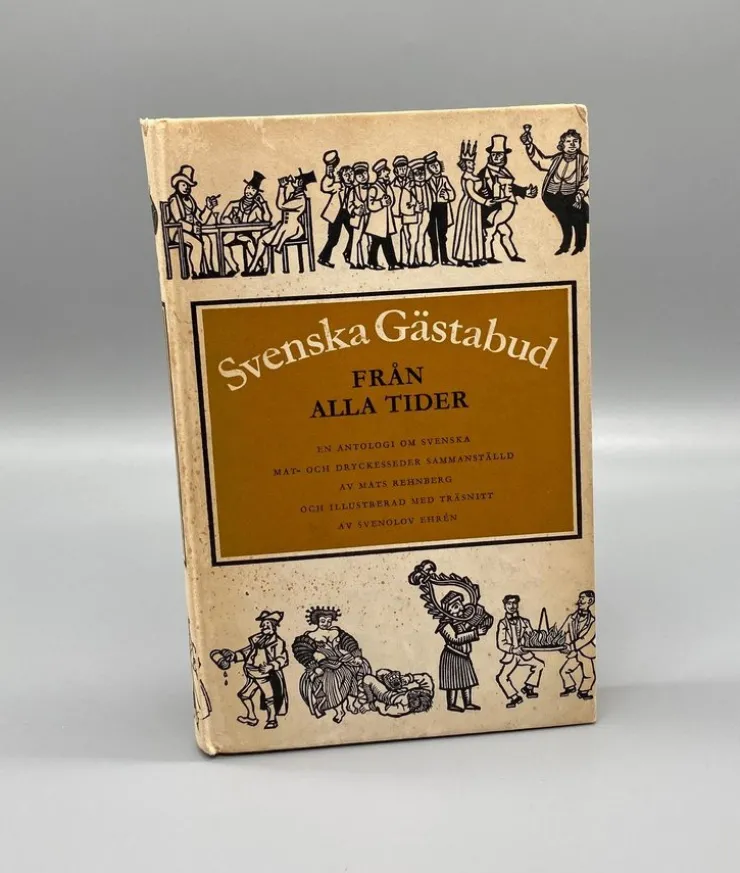 Titel: Svenska gästabud från alla tider – En antologi om svenska mat- och dryckesseder sammanställd av Mats Rehnberg och illustrerad med träsnitt av Svenolov Ehrén