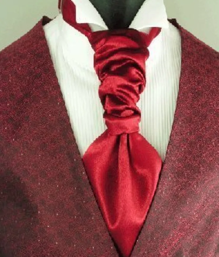 Vinröd kravatt och bröstnäsduk (som man viker själv). Matcha till bröllopets eller festens färgtema!