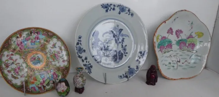 Clearance Kinesiska porslinstallrikar, vas och figurin. Orientalsk Kunst Og Porcelæn