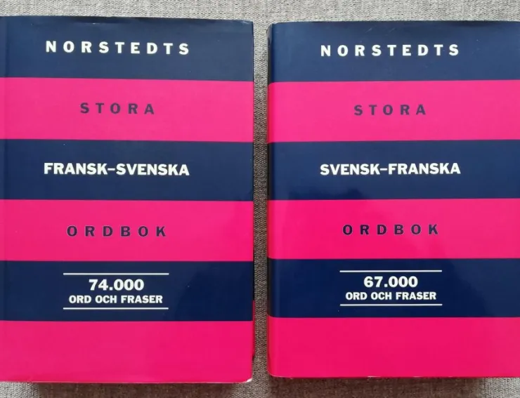 Norstedts stora fransk-svenska/svensk-franska ordbok med 141000 ord och fraser.