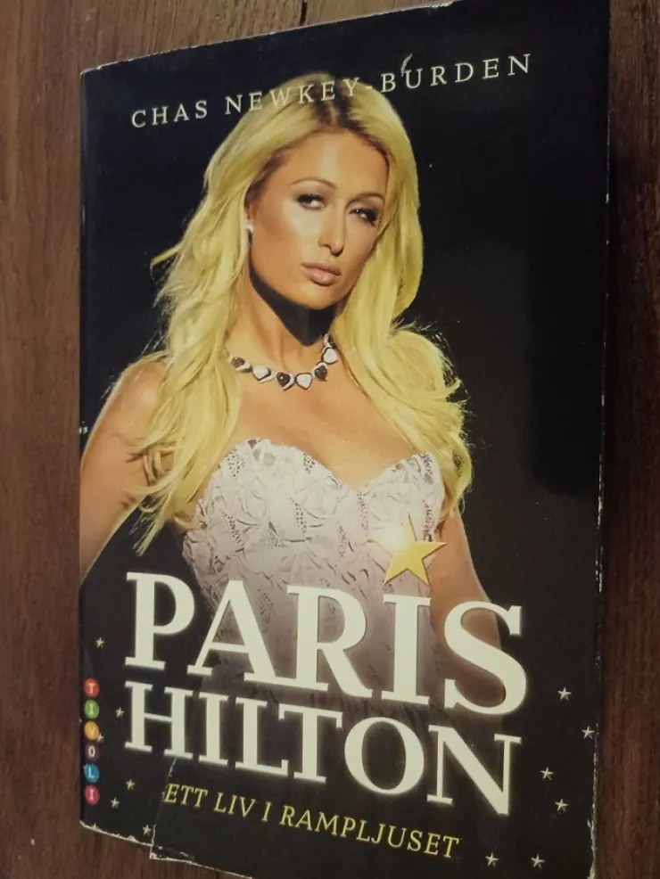 En bok om Paris Hilton med bilder och text om hennes liv.