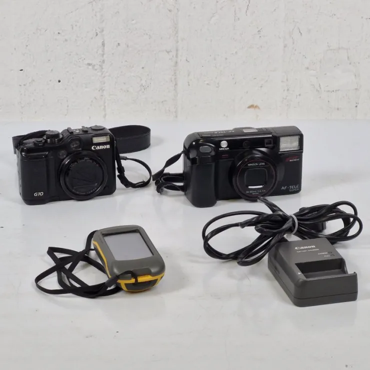 2st kameror, batteriladdare & GPS – Canon G10 – Minolta – Garmin