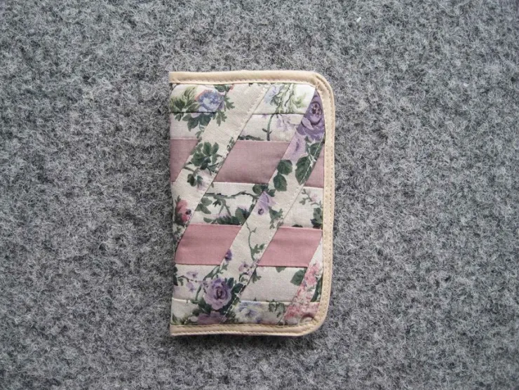 Handgjort glasögonfodral av bomullstyg i lapptäcksteknik och lätt vadderat