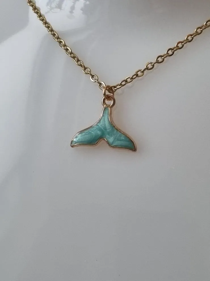 Fint och stilrent halsband i rostfritt stål med en berlock som föreställer en delfinfena / stjärtfena. Finns flera olika storlekar på halsbanden, fler färger, former och motiv på berlockerna i butiken.