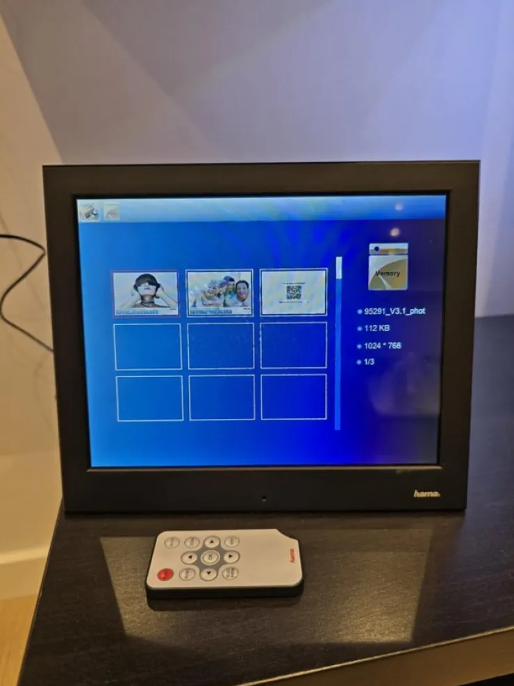 Hama Digital fotoramme med indbygget hukommelseskortlæser inkl fjernbetjening.