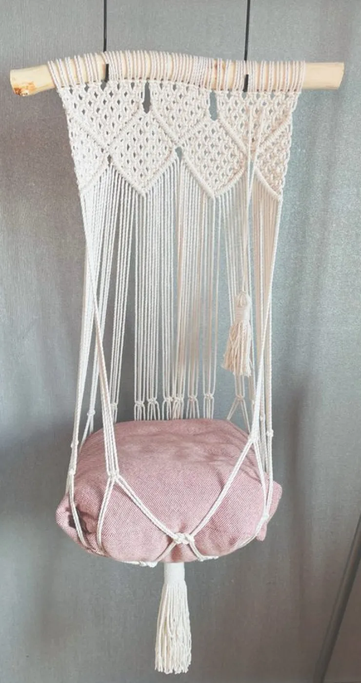 Den är skapad för att ge din katt en lugn plats att vila . Jag använder till den här katt gungar makramé bomull garn och pinne som jag själv plockat i naturen och behandla den hemma .