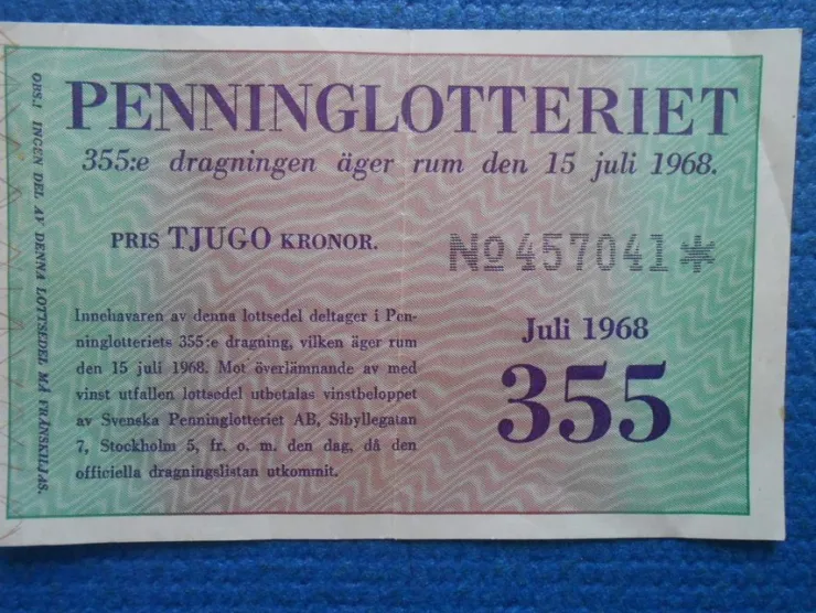 Tradera Penninglotteriet 15 juli 1968> Lotterier & Lodsedler