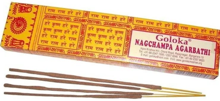 Rökelse Goloka "Gul" Nagchampa från Golokaincense i Indien. Förpackning 16g. 15-18 stickor