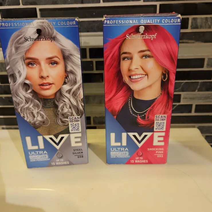 Tradera Schwarzkopf LIVE Ultra Brights hårfärg Steel Silver & Shocking Pink> Hårpleje
