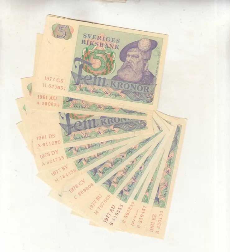 Tradera Sedel 5 kronor 1981 och tidigare 13 styck ovikta ca 0 till 01/0| Sedler