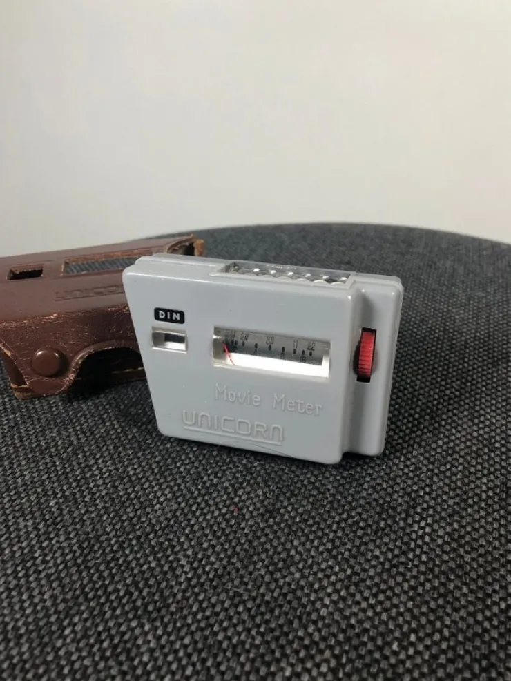 UNICORN Movie Meter er en vintage lysmåler til film. Den er kompakt og har et enkelt design. Lysmåleren er udstyret med en DIN-skala. Medfølger et brunt læderetui.